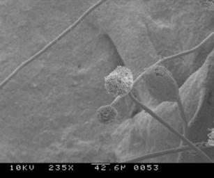 Keywords: Aspergillus 235 mags 3X3 copy.jpeg en Scan of mold aspergillus at 235 magnifications under a scanning electron microscope own MWolfin 2010-02-18 This is my work it has not been published Aspergillus cc-zero