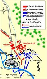 Keywords: Assault on Schellenberg 2 July 1704.svg Storming of the Schellenberg 2 July 1704 Marlborough's forces were twice repelled attempting to assault the Franco-Bavarian defences on the left before Baden's forces were able to breach the sparse defences on the right wing La toma del fuerte de Shellenberg 2 de julio de 1704 Los defensores francobávaros consiguieron repeler dos veces a las fuerzas del Duque de Marlborough hasta que el Margrave de Baden-Baden consiguió abrir una brecha en el flanco derecho en Image Assault on Schellenberg 2 July 1704 GIF 2007-03-16 en User Raymond Palmer Vectorization and translation Chabacano Raymond Palmer en Image Assault on Schellenberg 2 July 1704 GIF Maps of battles Created with Inkscape |
