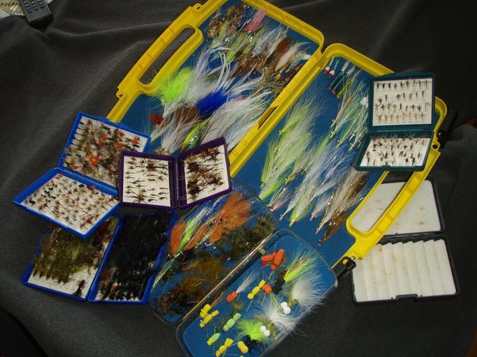 Keywords: AssortedFlyBoxes.jpg en Assortment of fly boxes with trout warmwater and saltwater flies Own Mike Cline 2008-01 Fly fishing