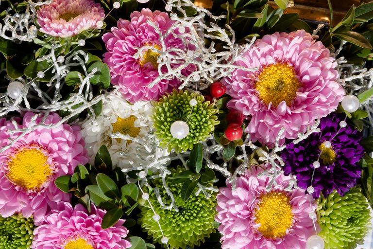 Keywords: asters autumn arrangement decoration autumn flowers violet pink green floral decorations autumn decoration