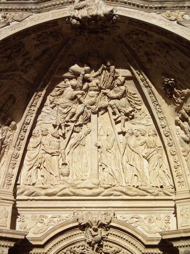 | Keywords: Astorga Catedral de Santa María (01).JPG Detail on the tympanum of the main portal of the Catedral de Santa María Astorga León Spain Own Mattana 2010-11-23 Images by Mattana-Astorga Spain Cathedral of Astorga main facade Sculptures of the descent from the cross |
