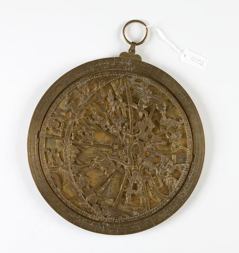 Keywords: Astrolabium av förgylld mässing, från cirka 1540-1570 - Skoklosters slott - 92889.tif LSH artwork sv Ett astrolabium är en uppfinning från antiken men utvecklad till perfektion i den islamska världen på 1000-talet Instrumentet var mycket populärt och använt bland astronomer och astrologer fram till mitten av 1600-talet <br/>Det plansfäriska astrolabiet som det är frågan om är en två dimesionell modell av universum och med instrumentet kan man bland annat räkna ut tiden avstånd och förhållanden mellan solen månen och andra himlakroppar under året <br/>Mater två reten samt en liten lös rund skala diopterlinjal original caption Astrolabium av förgylld mässing från cirka 1540-1570 <br/> Nyckelord Astronomi Mätinstrument Vetenskapshistoria Astrolabium Föremålsbild - 1540 1570 g 975 size mm 254 4 4 SKO Vertumnus 2014 Skoklosters slott place of origin original filename sm_dig5549 31661 inventory number SKO 10552 92889 CC-BY-SA Fredrik Andersson <gallery caption Different images of same object > File Astrolabium av förgylld mässing från cirka 1540-1570 - Skoklosters slott - 92890 tif </gallery> Islamic Astrolabes Fredrik Andersson Media contributed by LSH unmatched keyword Media contributed by LSH 2014-11 |
