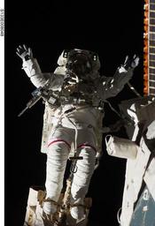 Keywords: astronaut spacewalk iss tools suit pack tether floating international space station job maintenance extravehicular activity