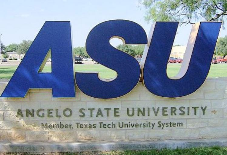 Keywords: Asusign.jpg en Entrance sign at Angelo State University Own ASUPHOTOG 2009-05-13 Angelo State University
