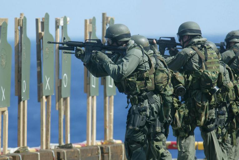 Keywords: US Navy 020924-N-8590G-004 U.S. Marines from the 31st Marine Expeditionary Unit (MEU), take aim at their targets on the aft aircraft elevator of the Essex.jpg en At sea aboard USS Essex LHD 2 Sep 24 2002 -- U S Marines from the 31st Marine Expeditionary Unit MEU take aim at their targets on the aft aircraft elevator of the Essex The Marines are conducting shooting exercises while embarked aboard Essex to maintain their marksmanship and to be prepared for any possible amphibious mission Essex is underway with the 31st Marine Expeditionary Unit MEU participating in a Special Operations Capable Exercise SOCEX SOCEX is designed to certify that Special Operations Capable Teams are capable of executing several diverse missions from humanitarian assistance and disaster relief efforts to full-scale combat operation U S Navy photo by Photographer's Mate 3rd Class Gary B Granger RELEASED 2002-09-24 020924-N-8590G-004 Navy http //www navy mil/view_image asp id 2810 U S Navy photo by Photographer's Mate 3rd Class Gary B Granger PD-USGov-Military-Navy Aboard USS Essex LHD-2 |