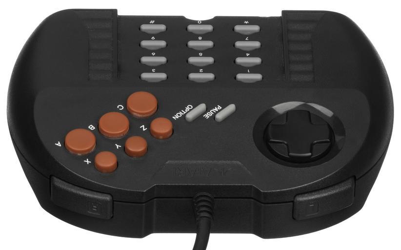 | Keywords: Atari-Jaguar-Pro-Controller-Top.jpg The top of the Atari Jaguar's Pro Controller The Pro Controller was released late in the Jaguar's life making it rare today The controller contains three additional face buttons and two L/R triggers to the top Very few games make use of these extra buttons explicitly but old games can make use of them since the new buttons are just remapped from the keypad buttons below own 2014-06-20 Evan-Amos User Evan-Amos/EABanner Taken with Nikon D7100 Electronic devices on white background Atari Jaguar Game controllers |