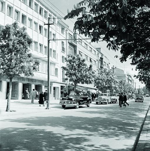 | Keywords: outdoor road monochrome From left to right: Grand Movie Theatre, And (Pledge) Apartment Building of Turgut Demirdağ and Bulvar Apartment Building of Öztrak Family. It is not in the photo yet, but İşçi Sigortaları Hanı (Workers’ Insurance Office) would be built in 1952 on the empty lot. The ground for the Grand Movie Theatre was broken in 1947. It was designed by architect Abidin Mortaş. The building’s capacity allowed an audience of 1550 people. It was quite luxurious. The personnel were well-dressed. The theatre was opened with the movie Deception on January 17, 1949. Film premieres were special events. People would wear their best clothes on Monday nights as if they were going to an opera. Atatürk Bulvarı, Büyük Sinema ve İş Hanı, 1950’li yıllar. Soldan itibaren Atatürk Bulvarı’nda Büyük Sinema, yanında Turgut Demirağ’ın And Apartmanı, onun yanında Öztrak ailesinin Bulvar Apartmanı. Fotoğrafta görülmüyor; ama yanındaki boş arsaya, Tuna Caddesi’nin köşesine 1952’de İşçi Sigortaları Hanı yapılacaktır. Büyük Sinema’nın temeli 1947’de atıldı. Mimarı Abidin Mortaş’tı. 1550 seyirci alıyordu. Konforluydu. Personeli özel giyimliydi. Sinemanın perdesi 17 Ocak 1949 günü Zehirli Yalan (Deception) filmiyle açıldı. Galaların özel bir yeri vardı. İnsanlar, pazartesi geceleri olanca şıklıkları içinde, operaya gidermiş gibi giderlerdi Büyük Sinema’ya. Türk filmlerine nadir olarak yer verilirdi. Sesi radyodan, taş plaklardan bilinen, çok merak edilen Zeki Müren, ilk konserini 19 Kasım 1953 günü Büyük Sinema’da verdi. Sinema her etkinliğe açıktı. From left to right: Grand Movie Theatre, And (Pledge) Apartment Building of Turgut Demirdağ and Bulvar Apartment Building of Öztrak Family. It is not in the photo yet, but İşçi Sigortaları Hanı (Workers’ Insurance Office) would be built in 1952 on the empty lot. The ground for the Grand Movie Theatre was broken in 1947. It was designed by architect Abidin Mortaş. The building’s capacity allowed an audience of 1550 people. It was quite luxurious. The personnel were well-dressed. The theatre was opened with the movie Deception on January 17, 1949. Film premieres were special events. People would wear their best clothes on Monday nights as if they were going to an opera. Atatürk Bulvarı, Büyük Sinema ve İş Hanı, 1950’li yıllar. Soldan itibaren Atatürk Bulvarı’nda Büyük Sinema, yanında Turgut Demirağ’ın And Apartmanı, onun yanında Öztrak ailesinin Bulvar Apartmanı. Fotoğrafta görülmüyor; ama yanındaki boş arsaya, Tuna Caddesi’nin köşesine 1952’de İşçi Sigortaları Hanı yapılacaktır. Büyük Sinema’nın temeli 1947’de atıldı. Mimarı Abidin Mortaş’tı. 1550 seyirci alıyordu. Konforluydu. Personeli özel giyimliydi. Sinemanın perdesi 17 Ocak 1949 günü Zehirli Yalan (Deception) filmiyle açıldı. Galaların özel bir yeri vardı. İnsanlar, pazartesi geceleri olanca şıklıkları içinde, operaya gidermiş gibi giderlerdi Büyük Sinema’ya. Türk filmlerine nadir olarak yer verilirdi. Sesi radyodan, taş plaklardan bilinen, çok merak edilen Zeki Müren, ilk konserini 19 Kasım 1953 günü Büyük Sinema’da verdi. Sinema her etkinliğe açıktı. |