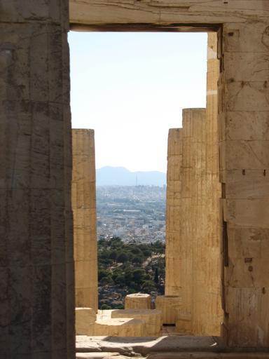 Keywords: athens acropolis temple greece pillars scenic landscape sky ancient ruins remains historic landmark temple complex columnar