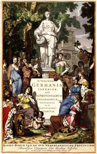 | Keywords: Atlas Van der Hagen-KW1049B11 054-GERMANIA INFERIOR, Sivè XVII PROVINCIARUM GEOGRAPHICAE GENERALES ut et PARTICULARES TABULAE = KAERT-BOECK VAN DE XVII NEDERLANDTSCHE PROVINCIEN -titlepage.jpeg of the Atlas Van der Hagen in the catalogue of the KB http //opc4 kb nl/DB 1/TTL 1/LNG EN/PPN PPN 353012750 Creator Nicolaes_Visscher_II Author N Visscher Publisher Creator Nicolaes_Visscher_II Author N Visscher Publisher Creator Nicolaes_Visscher_II credit line na 1681 Dit titelblad behoort tot de meest populaire atlassen uit de 17de eeuw Een atlas waarin de Noordelijke en Zuidelijke Nederlanden als één aaneengesloten gebied werden gepresenteerd de Germania Inferior De 17 provincies worden hier voorgesteld door dames met de wapenschilden van hun gebieden De hertogdommen Brabant Gelderland Limburg en Luxemburg zijn vooraan getekend Daarachter staan de damens die de overige graafschappen en heerlijkheden symboliseren De eerste druk van deze beroemde atlas werd in 1617 - tijdens het Twaalfjarig Bestand - uitgegeven door de graveur en uitgever Pieter van der Keere 1571-ca 1646 Toen enige jaren de oorlog met de Spanjaarden weer in alle hevigheid losbarstte maakte deze eerste nationale atlas overduidelijk wat nu eigenlijk de inzet van de strijd was de samenbrenging van de 17 provincies in één nationale staat Dit titelblad behoorde bij een editie van de atlas die Nicolaes Visscher II 1649-1702 na 1681 publiceerde This title page belongs to one of the most popular atlases from the 17th century the atlas Germania Inferior It represents the Northern and Southern Netherlands as one continuous territory The 17 provinces are represented by women with coats of arms of the provinces The duchys Brabant Gelderland Limburg and Luxembourg are drawn first Behind them are women symbolising the other counties and seignories The first print of this famous atlas was published in 1617 - during the Twelve Year Truce - by the Amsterdam engraver and publisher Pieter van der Keere 1571-c 1646 When the battle with the Spanish was renewed some years later this first national atlas explained the reason of the war the joining of the 17 provinces into one national State This title page belonged to an edition of the atlas published by Nicolaes Visscher II 1649-1702 after 1681 41 x 26 cm exhibition history Institution Koninklijke Bibliotheek kopergravure Technique copper engraving KW1049B11_054 - Volume 1 Nicolaes Visscher II Information field Depicted locations Netherlands - Belgium - Luxembourg object history object type Prent Print PD-old-100 place of creation Amsterdam place of discovery Source page at the http //resolver kb nl/resolve urn urn gvn KONB01 173 Geheugen van Nederland / Memory of the Netherlands website Koninklijke Bibliotheek GERMANIA INFERIOR Sivè XVII PROVINCIARUM GEOGRAPHICAE GENERALES ut et PARTICULARES TABULAE KAERT-BOECK VAN DE XVII NEDERLANDTSCHE PROVINCIEN titlepage Uploaded with GWToolset Atlas Van der Hagen-KW1049B11_054-GERMANIA INFERIOR Sivè XVII PROVINCIARUM GEOGRAPHICAE GENERALES ut et PARTICULARES TABULAE KAERT-BOECK VAN DE XVII NEDERLANDTSCHE PROVINCIEN titlepage http //resolver kb nl/resolve urn urn gvn KONB01 1049B11_054 size large Atlas van der Hagen |