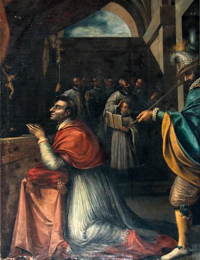 | Keywords: Attentato a san Carlo Borromeo.png it a grande tela in origine una pala d ™altare raffigura un episodio della vita del santo piuttosto raro ed unico a Roma l ™attentato accaduto nel 1569 è frutto del rigore con cui Carlo Borromeo cercò di riformare gli ordini religiosi milanesi come testimonia ad esempio il «Trattato de ™ regolari et loro riforma»15 ; l ™anonimo estensore f 10 ricorda quanto accaduto al Borromeo quando era arcivescovo di Milano «Aggiungerò di più che agli offesi non sarebbe gran cosa levare di mezzo un solo si come già si volse fare del cardinale Borromeo»16 Le punizioni messe in atto dal Borromeo furono drastiche potendo arrivare fino allo scioglimento di un ordine religioso ed alla chiusura del convento «Non è dubbio che quanto più in numero sono gli ordini tanto più di cura ci vuole Aggiungo che la troppo varietà delle religioni non è secondo lo spirito della chiesa» f 47 Non mancavano quindi aspre critiche sul conto dell ™operato del giovane arcivescovo tanto che la sua venne definita una «teocrazia dispotica» A Milano era noto come «uomo di ferro» e «martello degli eretici» La severità del suo operato si rifletteva anche sulla immagine che voleva dare di sé non esiste infatti una sua effigie che lo mostri con un ™espressione serena Nei fatti la figura di Carlo Borromeo era più discussa che ammirata poiché gli fu sempre contestata l ™Â«esagerata energia nell ™operare» È noto che Carlo Borromeo ebbe particolare cura della sua immagine pubblica propria del suo «Status di nobile» e sebbene aspirasse con tutte le sue forze alla grandezza scelse come suo motto Humilitas http //annamariapedrocchi it/wp-content/uploads/2016/01/Estratto_Pedrocchi pdf Unknown Person XVI Secolo PD-old-100 Paintings of Charles Borromeo in Italy |
