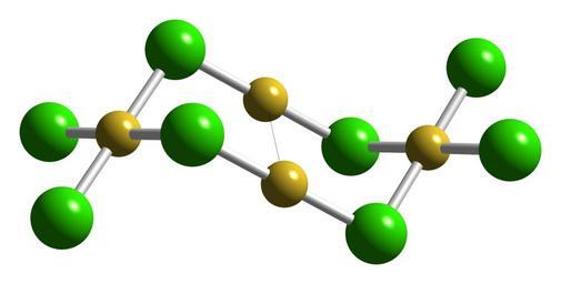 | Keywords: Au4Cl8-from-xtal-1982-CM-3D-balls.png  Ball-and-stick diagram of the gold I III chloride molecule Au<sub>4</sub>Cl<sub>8</sub> as found in the crystal structure Colour code Gold Au golden -yellow Chlorine Cl green Crystal structure from http //dx doi org/10 1039/DT9820002257 J Chem Soc Dalton Trans 1982 2257-2260 Image generated in http //www crystalmaker com/ CrystalMaker 8 3 Own 2010-08-05 Ben Mills Benjah-bmm27 Images by Ben Mills Ball-and-stick models Crystal structures of gold I III chloride Crystal structures in space group number 2 |