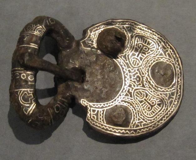 Keywords: Aubinger Gürtelschnalle517.jpg en Burial object from an early medieval cemetery at Bergsonstraße in Munich-Aubing Germany 5th - 7th century AD Photographed at an exhibition of the Förderverein 1000 Jahre Aubing e V on the occasion of the 1000-year celebrations of Aubing in April 2010 Belt buckle showing faces iron with silver inlay de Grabbeigabe aus dem frühmittelalterlichen Gräberfeld an der Bergsonstraße München-Aubing 5 - 7 Jahrhundert Aufgenommen in der historischen Ausstellung des Fördervereins 1000 Jahre Aubing e V anlässlich der 1000-Jahr-Feierlichkeiten in Aubing April 2010 Gürtelschnalle mit Gesichtern Eisen mit Silbereinlage own Dietzel65 Steffen Dietzel 2010-05-02 History of Aubing Ancient Germanic belt buckles in Germany Bavarii belt buckles Lunulae |