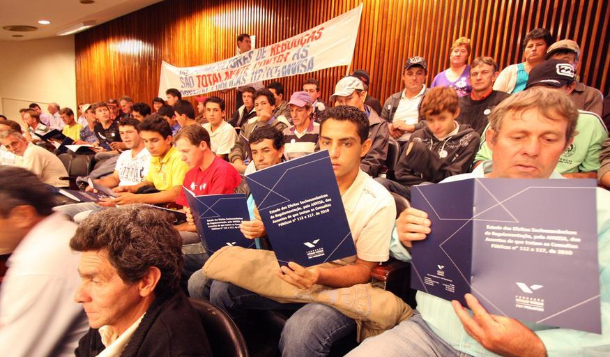 | Keywords: O Plenário da Assembleia Legislativa do Paraná recebeu na manhã desta quarta-feira (23/03) cerca de 1500 pequenos produtores de fumo e lideranças para a audiência pública sobre a produção de fumo no Paraná. Por proposição do deputado Stephanes Junior (PMDB), o evento tratou da possível proibição pela Anvisa da utilização de diversos ingredientes na produção do cigarro. De acordo com o parlamentar, a proibição pode afetar perto de 30 mil pequenos agricultores paranaense e suas famílias, que dependem da fumicultura para o seu sustento. Foto: Nani Gois / Alep |