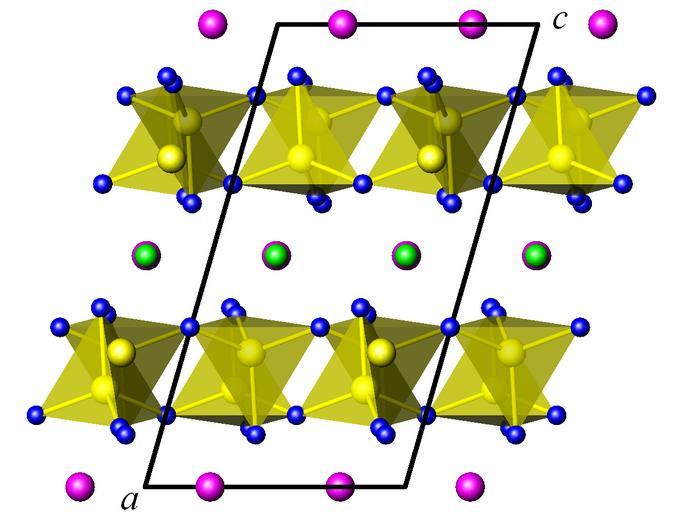 Keywords: Augite.png en Crystal structure of augite Green calcium pink magnesium yellow silicon blue oxyggen own Perditax 2010-07-31 Crystal structures in space group number 15 Augite