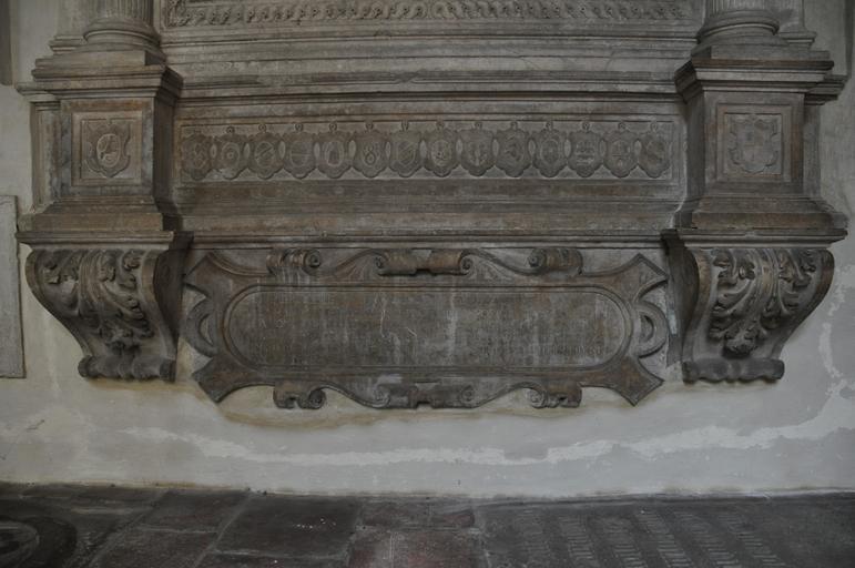 Keywords: Augsburg Domkreuzgang Nr116 03.jpg Augsburg Dom Kreuzgang Nordflügel 2 Joch ursprünglich im Dom 1880 hierher versetzt Epitaph für Ambrosius von Gumppenberg 4 September 1574 beerdigt in Eichstätt Meister unbekannt 1574 Kosel Nr 116 Detail Ahnenprobe mit 16 Wappen Reihenfolge stimmt nicht mit der tatsächlichen Genealogie überein; diese ist bei Kosel S 181 abgedruckt Ahnenprobe-Wappen am Epitaph optisch links außen Fraß von Eurasburg Mitte Nr 1 Yringsburg Mitte Nr 2 Knöringen Mitte Nr 3 Frauenberg Mitte Nr 4 Schmiechen Mitte Nr 5 Kammer Mitte Nr 6 Seckendorff Mitte Nr 7 Gumppenberg Mitte Nr 8 Waldeck Mitte Nr 9 Rechberg Mitte Nr 10 Nußdorf Mitte Nr 11 Preysing Mitte Nr 12 Bocksberg Mitte Nr 13 Reichenberg Mitte Nr 14 Hutten rechts außen Ellerbach own 2015-11 UliE1350 <gallery> File Augsburg Domkreuzgang Nr116 01 jpg File Augsburg Domkreuzgang Nr116 02 jpg File Augsburg Domkreuzgang Nr116 04 jpg </gallery> cc-0 Wall mounted church monuments in the cloister of Augsburg Cathedral Reliefs of coats of arms in Augsburg Coats of arms of Fraß von Eurasburg family Coats of arms of Yringsburg family Coats of arms of Knöringen family Coats of arms of Frauenberg family Coats of arms of Schmiechen family Coats of arms of Kammer family Coats of arms of Seckendorff family Coats of arms of Gumppenberg family Coats of arms of Waldeck family II Coats of arms of Rechberg family Coats of arms of Nussdorff family Coats of arms of Preysing family Coats of arms of Bocksberg family Coats of arms of Reichenberg family Coats of arms of Hutten family Coats of arms of Ellerbach family 1574 works in Germany |