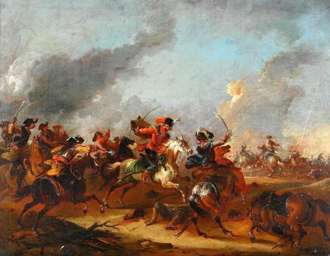 Keywords: August Querfurt - Schlachtenmotiv.jpg Artwork Creator August Querfurt oil canvas cm 60 76 accession number object history credit line http //www arcadja com/auctions/de/private/querfurt_august/kunstwerken/23661/0/ Stockholms Auktionsverket 2005 12 02 lot 2459 via ARCADJA auction results PD-old-100 Hussars of the 18th century August Querfurt 18th-century paintings of cavalry in battle Baroque paintings of war Images from Stockholms Auktionsverket |