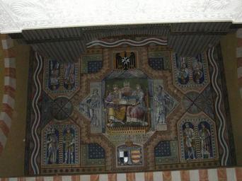 Keywords: Augusta VictoriaDSCN4732.JPG The Lutheran Ascension Church at Augusta Victoria Foundation Jerusalem; ceiling with paintings created between 1910-1911 by M Schmidt following designs by Otto Vittali d J 1872-1959 depicting William II Auguste Victoria Frederick Barbarossa Frederick II Conrad III Louis VII Knight Pierre d'Amiens Richard Lionheart and the Tancred self-photographed 2009-11-20 Yoav Dothan Own work all rights released Public domain Ascension Church Jerusalem - interior Ceiling William etc Augusta Viktoria of Schleswig-Holstein Jerusalem Ascension Protestant Conrad III of Hohenstaufen Jerusalem Ascension Protestant Frederick I Holy Roman Emperor Jerusalem Ascension Protestant Frederick II Holy Roman Emperor Jerusalem Ascension Protestant Louis VII of France Jerusalem Ascension Protestant Peter of Amiens Jerusalem Ascension Protestant Philip II of France Jerusalem Ascension Protestant Richard I of England Jerusalem Ascension Protestant Tancred of Antioch Jerusalem Ascension Protestant Monuments and memorials to William II of Germany Jerusalem Ascension Protestant Coats of arms of the Kingdom of Prussia Jerusalem Ascension Protestant Coats of arms of the house of Hohenzollern Jerusalem Ascension Protestant Coats of arms of family of Oldenburg Jerusalem Ascension Protestant Church ceilings in Israel Jerusalem Ascension Protestant |