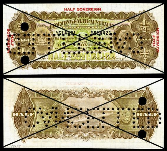 | Keywords: AUS-10-Commonwealth Bank of Australia-Half Sovereign (1923).jpg Commonwealth Bank of Australia Half Sovereign cancelled specimen note 1923 1923 note 2015 image Image by Godot13 Commonwealth Bank of Australia Institution Smithsonian National Museum of American History Use of this image should give credit to the National Numismatic Collection National Museum of American History other versions Assessments 1 Banknotes of the Australian pound “ Series of 1918 and 1923 “1925 PD-Australia-currency self cc-by-sa-4 0 Godot13 National Numismatic Collection <br>National Museum of American History 2013030510011547 2015 User Godot13 NNC Banknotes scanned by User Godot13 NNC Foreign Banknotes Banknotes of Australia Uploaded with UploadWizard George V of the United Kingdom on banknotes Coats of arms of Australia on money Goulburn Weir Banknotes with a face value of 0 5 Featured Pictures English Wikipedia by User Godot13 NNC banknote Featured Pictures English Wikipedia |