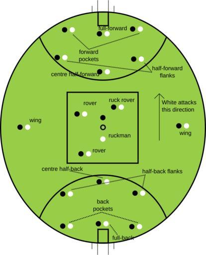 | Keywords: Aussie rules ground positions.svg SVG source of the Aussie Rules ground positions Image created by Robert Merkel and placed in the public domain by the author Robert Merkel Bitmap version Image aussie_rules_ground_positions_medium png Robert Merkel original upload log page en wikipedia Aussie_rules_ground_positions svg 2008-01-23 04 08 Beamerized 642×795× 27704 bytes <nowiki></nowiki> 2003-07-22 09 07 Robert Merkel 744×1052× 34856 bytes <nowiki>SVG source of the Aussie Rules ground positions Image created by Robert Merkel and placed in the public domain by the author</nowiki> Australian rules football field |