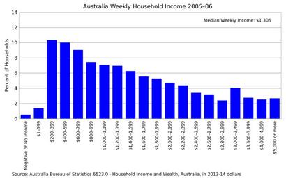 | Keywords: Australia household income 2006.svg  en Weekly household income distribution of Australia in 2005-2006 Data from Australian Bureau of Statistics http //www abs gov au/AUSSTATS/abs nsf/DetailsPage/6523 02013-14 Household Income and Wealth 2016-06-17 own Delphi234 other versions cc-zero Income distribution in Australia |