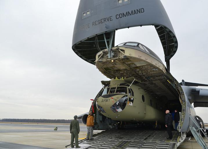 | Keywords: Australian Army CH-47F Chinook partially inside a USAF C-5 Galaxy at Dover Air Force Base.jpg en Members of Team Dover and the 337th Airlift Squadron Westover Air Reserve Base Mass load two Boeing Chinook CH-47Fs into a C-5 Super Galaxy March 27 2015 at Dover Air Force Base Del Each helicopter weighted just shy of 24 000 pounds and were being shipped to the Australian Army U S Air Force photo/Airman 1st Class William Johnson 2015-03-27 21 01 29 http //www dover af mil/news/story asp id 123443781 U S Air Force photo/Airman 1st Class William Johnson other versions PD-USGov CH-47 Chinook in Australian service Dover Air Force Base Transport of CH-47 Chinook by C-5 Galaxy |