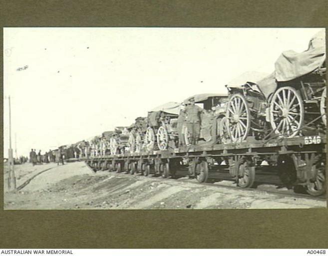 | View Original: | Australian Army rail transport arriving at the railhead during World War I.JPG (640x499) | |||