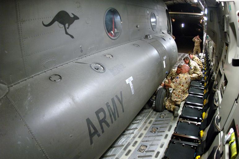 | Keywords: Australian C-47D being secured inside a USAF C-17 Globemaster in 2006.jpg en SOUTHWEST ASIA - American crewmembers from the 817 Expeditionary Airlift Squadron and their Australian forces counterparts secure an Australian Army CH-47 helicopter onto a C-17 Globemaster III at a deployed location in southwest Asia on 12 March 2006 The aircraft is from McChord Air Force Base Washington USAF Photo by SSgt Joshua Strang Released 2006-03-12 04 35 48 http //www af mil/News/ArticleDisplay/tabid/223/Article/131669/combat-cargo-capability aspx U S Air Force photo/Staff Sgt Joshua Strang other versions PD-USGov CH-47 Chinook in Australian service Transport of CH-47 Chinook by Boeing C-17 Globemaster Military history of Australia during the 2001-present War in Afghanistan Soldiers of Australia |