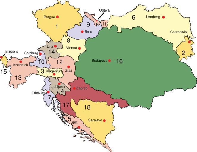 | Keywords: Austria-Hungary map.svg <u>Austria</u> Empire of Austria Cisleithania 1 Bohemia 2 Bukovina 3 Carinthia 4 Carniola 5 Dalmatia 6 Galicia 7 Küstenland 8 Lower Austria 9 Moravia 10 Salzburg 11 Silesia 12 Styria 13 Tyrol 14 Upper Austria 15 Vorarlberg; Kingdom of Hungary Transleithania 16 Hungary 17 Croatia-Slavonia; Austrian Condominium 18 Bosnia and Herzegovina <u>Österreich 1910</u> Cisleithanien 1 Böhmen 2 Bukowina 3 Kärnten 4 Krain 5 Dalmatien 6 Galizien 7 Küstenland 8 Österreich unter der Enns 9 Mähren 10 Salzburg 11 Schlesien 12 Steiermark 13 Tirol 14 Österreich ob der Enns 15 Vorarlberg; Transleithanien 16 Ungarn 17 Kroatien und Slawonien; 18 Bosnien und Herzegowina <u>AÅstrio 1910</u> Cislajtio 1 Bohemio 2 Bukovino 3 Karintio 4 Krajino 5 Dalmatio 6 Galicio kaj Lodomerio 7 AÅstria Marbordo 8 Malsupra AÅstrio AÅstrio sub Enns 9 Moravio 10 Salcburgio 11 Silezio 12 Stirio 13 Tirolo 14 Supra AÅstrio AÅstrio super Enns 15 Vorarlbergo; Translajtio 16 Hungario 17 Kroatio kaj Slavonio; 18 Bosnio kaj Hercegovino <u>Ausztria</u> Osztrák Császárság Ciszlajtánia 1 Csehország 2 Bukovina 3 Karintia 4 Krajna 5 Dalmácia 6 GalÃcia 7 Tengermellék 8 Alsó-Ausztria 9 Morvaország 10 Salzburg 11 Szilézia 12 Stájerország 13 Tirol 14 Ausztria 15 Vorarlberg; osztrák kondomÃnium 18 Bosznia és Hercegovina <u>Austria</u> Imperium Austriae Cisleithania 1 Bohemia 2 Bucovina 3 Carinthia 4 Carniola 5 Dalmatia 6 Galicia 7 Litorale 8 Austria Inferior 9 Moravia 10 Salisburgum 11 Silesia 12 Styria 13 Tirolis 14 Austria Superior 15 Cisarulana; Regnum Hungariae Transleithania 16 Hungaria 17 Croatia et Slavonia Condominium 18 Bosnia et Herzegovina <u>Austro “WÄ™gry</u> Cesarstwo Austrii Przedlitawia 1 Czechy 2 Bukowina 3 Karyntia 4 Kraina 5 Dalmacja 6 Galicja i Lodomeria 7 Pobrzeże 8 Austria przed AnizÄ… 9 Morawy 10 Salzburg 11 ÅšlÄ…sk Austriacki 12 Styria 13 Tyrol 14 Austria za AnizÄ… 15 Vorarlberg; Królestwo WÄ™gier Zalitawia 16 WÄ™gry 17 Chorwacja; BoÅ›nia 18 BoÅ›nia i Hercegowina <u>Österrike-Ungern</u> Cisleithanien 1 Böhmen 2 Bukovina 3 Kärnten 4 Krain 5 Dalmatien 6 Galizien och Lodomerien 7 Österrikiska kustlandet det gemensamma förvaltningsomrÃ¥det för Görz Trieste och Istrien 8 Österreich unter der Enns eller Niederösterreich 9 Mähren 10 Salzburg 11 österrikiska Schlesien 12 Steiermark 13 Tyrolen 14 Österreich ob der Enns eller Oberösterreich 15 Vorarlberg; Transleithanien 16 Ungern med Vojvodina och Siebenbürgen 17 Kroatien och Slavonien; 18 Bosnien och Hercegovina <u>Autriche-Hongrie</u> Cisleithanie 1 R de Bohême 2 R de Bucovine 3 D de Carinthie 4 D de Carniole 5 R de Dalmatie 6 R de Galicie et de Lodomérie 7 Littoral autrichien 8 Basse Autriche 9 Moravie 10 D de Salzbourg 11 Silésie autrichienne 12 D de Styrie 13 Tyrol 14 Haute Autriche 15 Vorarlberg; Transleithanie 16 R de Hongrie 17 R de Croatie-Slavonie; 18 Bosnie-Herzégovine own at English wikipedia 2006-08-14 IMeowbot Austria map cs svg Austria map de svg Austria map hu svg Austria map-pl svg Image Austria map-blank svg for more maps derived from this template see Category Maps of Austria-Hungary ssp or whatlinks translation possible en English Wikipedia IMeowbot Maps of Austria-Hungary SVG maps showing history in English Location not applicable |