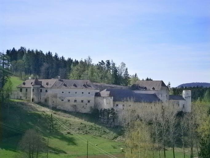 Keywords: austria landscape sky clouds mountains castle landmark historical architecture forest trees woods valley ravine grass nature outside summer spring country countryside