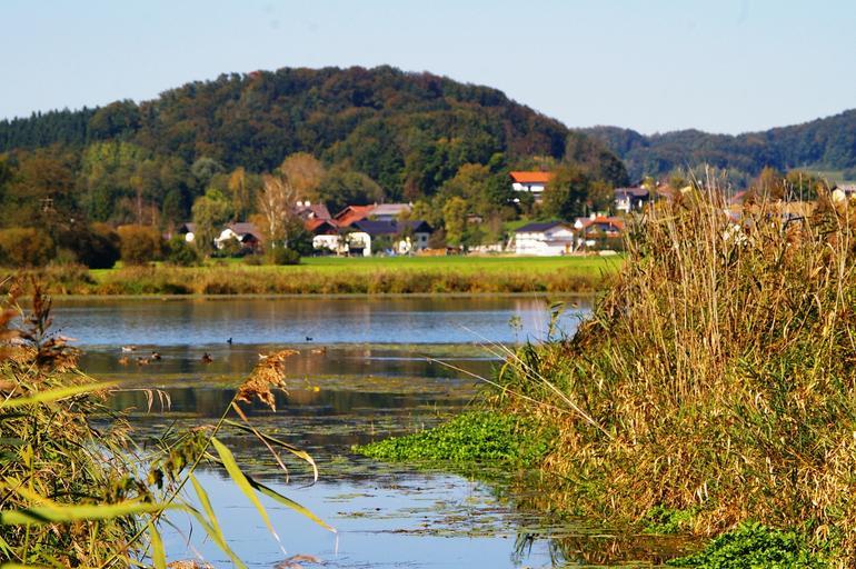 MAKE A MEME View Large Image austria mountains sky clouds fall autumn foliage colors colorful lake river water reflections plants grass village town shoreline nature outside country countryside rural