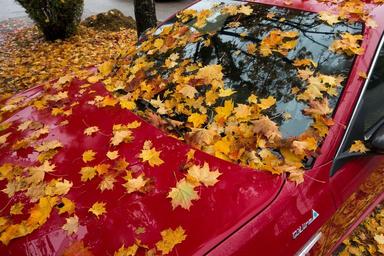 Keywords: auto alfa romeo gulietta red maple autumn leaf yellow orange leaves coloring bright fall color colorful nature fallen leaves covered