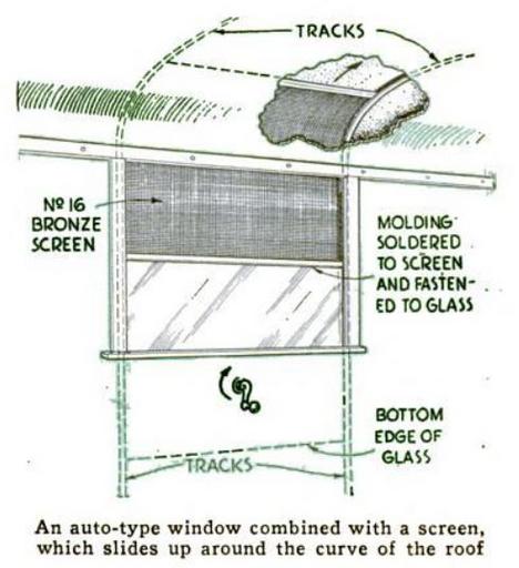| Keywords: Popular Science July 1937 Combination Screen and Window. If the trailer has a rounded roof and auto-type windows are installed, it is possible in some trailers to attach the screen to the top of the window as shown. Fred W. Vogel points out that there arr many advantages to such a combination. <a href="http://haw-creek.com/improved-trailer-fittings-make-life-on-wheels-more-comfortable/" rel="nofollow">haw-creek.com/improved-trailer-fittings-make-life-on-whee...</a> | ||||