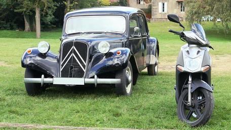 Keywords: automobile black traction citroen car former collection older vehicles old cars scooter