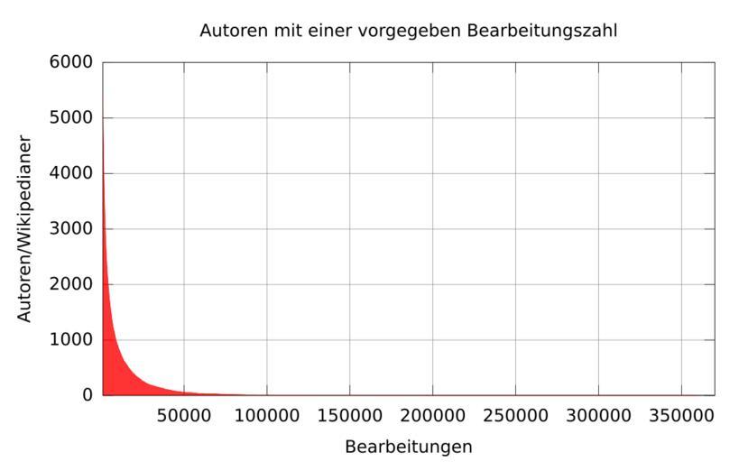 | Keywords: Autoren-normalskaliert.svg Verteilung der Beitragszahlen der aktivsten Autoren in der deutschen Wikipedia Angegeben ist die Gesamtanzahl der Bearbeitungen in allen Namensräumen jedoch ohne die gelöschte Bearbeitungen Erfasst sind alle Wikipedianer mit mehr als 1 000 Bearbeitungen own Gnuplot neu erstellt basierend auf auf den http //toolserver org/~aka/WP_BZ_raw txt Daten vom 10 01 2010 von Aka 1 2010-01-07 Frakturfreund wikipedia de Die Datei WP_Beitragszahlen svg wird im Gegensatz zu dieser Datei regelmäßig automatisch aktualisiert Des weiteren gibt es noch die folgenden Varianten dieser Datei die sich nur in der Art der Visualisierung unterscheiden <gallery perrow 3 widths 150 > File Autoren-normalskaliert svg Autoren normalskaliert File Autoren-logarithmisch svg Autoren einfach logarithmisch File Autoren-doppeltlogarithmisch svg Autoren doppelt logarithmisch File Beitragszahlen-normalskaliert svg Beitragszahlen normalskaliert File Beitragszahlen svg Beitragszahlen einfach logarithmisch File Beitragszahlen-doppeltlogarithmisch svg Beitragszahlen doppelt logarithmisch </gallery> Quelltext Beitragszahlen plt <pre> set terminal svg enhanced size 1600 1000 fname Sans-Serif fsize 30 set output Autoren-normalskaliert svg set title Autoren mit einer vorgegeben Bearbeitungszahl set nokey no legend set xlabel Bearbeitungen set ylabel Autoren/Wikipedianer set yrange 1 6000 set xrange 1000 370000 set grid ytics xtics show grid plot 'Beitragszahlen-2010 01 10-raw csv' using 1 0 with filledcurve y1 0 fill solid 0 8 </pre> Frakturfreund Original upload log de wikipedia Brackenheim CommonsHelper page de wikipedia Autoren-normalskaliert svg 2010-01-12 04 16 Frakturfreund 1600×1000× 149306 bytes <nowiki> Beschreibung Quelle Information Verteilung der Beitragszahlen der aktivsten Autoren in der deutschen Wikipedia Angegeben ist die Gesamtanzahl der Bearbeitungen in allen Namensräumen jedoch ohn</nowiki> German Wikipedia statistics Images with Gnuplot source code |