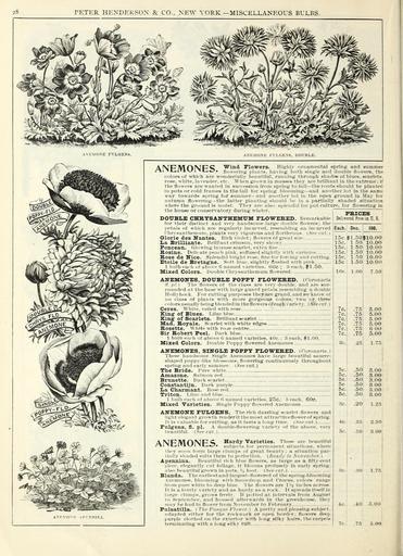 | Keywords: Autumn bulbs catalogue (16425947866).jpg 28 <br> PETER HEXDEKSOX CO NEW YORK ”MISCELLANEOUS BULBS <br> WKMOXE FULGKNS <br> A NK MONE FILGE SS DOUBLE <br> AIMp/yif pC Wind Flowers Hielily ornnmental spring and summer <br> ˘'» -« '» -' ' ~ L- 0 ioui-iiii;; iil ihts haviiij; both Kindle and double Hinvers the <br> colors if which are woiulerfully beautiful running through phadee of blue« scarlet <br> rose white lavender etc When grown in masses they are brllliaut in the extreme; if <br> the flowers are wanted in suiressicin from spring to fall ” the roots should be plante 1 <br> in pots or cold frames in the fall for e-priug lilooming ” and another lot In the same <br> way towards spring for summer ” and another lot in the open ground in May for <br> auttimn flowering -the latter planting should be in a partially shaded situation <br> where the ground is nioist They arc al -i i s ileTi lid tor Ot culture for flowenng in <br> the house or couservatorv during winter _____Z <br> DOTTBIiE CHBTSAITTHZntlUM TLOWERED Remarkable Delirered Free in U S <br> for their distinct and very hanilsonie large double rt nvers; the <br> petals of which are regularly incurved resembling an incurved jEacb Doz <br> rhrysanthemuni iilants very vigorous and tloriferous See fi;t <br> 100 <br> Glorie des IT antes Rich violet; flowers of great size <br> La Brilliante Hrilliant crimson very showy <br> Ponceau ilowing intense scarlet e xtra tine <br> Boslne Di-lii ate iieach pink suffused slightly «ith carmine <br> Bose de Nice Splendid bright rose fine for foning and cutting 15c <br> Etoile de Bretag e Soft lilac slightly flushed with pink 15c <br> 1 bnlb each of above 6 named vjirieties lOc ; H each Jl 50 <br> Mixed Colors Double Chrysanthemum flowered 10c <br> AKEMOUTS DOUBIO POPPY FI OWBBBJ Coronaria <br> ft fil 'riie flowers of the class are ver\ double and are sur- <br> rounded at the base with large guard petals resembling a double <br> Hollyhock For cutting iiurposes they are grand and we know of <br> no class of plants with more gorgeous colors Two or thire <br> colors usually being blended in the flowers of each variety Vpptuf <br> Ceres White veiled with rose - <br> Kin of Blues Lilac blue <br> Kingr of Scarlets Brilliant scarlet <br> Mad Boyale Scarlet with white edges <br> Eosette White with roje centre <br> Sir Bobert Peel Dark blue <br> 1 biilli - ˘I li of above I named varieties 40c ; 3 each 1 00 <br> Mixed Colors liouble Popjiy flowered Auemones <br> AKBMOITBS SINGIaB POPPY FZiOWEBEB CornnnriH <br> These handsome Single \neiiione8 have large bi'autiful saucer- <br> shaped io pA-Iike blossoms flowering continuously throughout <br> spring and earl\' summer Vee cut <br> The Bride ruie white <br> Amazone Salnion n-d <br> Brunette Dark scarlet <br> Constantijn Dark imrjile <br> La Charmant Itose ivd <br> Triton l ilac nid blue <br> 1 bulb each of above r named varieties 25c ; S each 60c <br> Mixed Varieties Single Poppy flowered Anemones <br> AITEMOirz FUXGEH'S The rich dnziling scariet flowers and <br> li ilit cicg -iiit gro\\tU renilerit the most attrac'tlveflowerof spring <br> 1 1 is V aliiable lor cutting as it lasts a long time i see CHf <br> Fulgens fl pi A double-flowering variety of the above very <br> iMaiitifiil See cut <br> ANEMONES <br> Hardy Varieties <br> subjects for pi <br> These an- heaiitlfnl <br> – nt situations when- <br> rli -\- soon lorni l -irge clumps of grca <br> iially shaded suits them to icrfii'lion <br> Apennina Iicautiful rich blue flow <br> l lccc elegantly cut foliage it blr oni <br> ilso beaiitifulgrown in pots ' foot <br> Blanda Tin- earliest ami largest-lloH <br> Aiiemont M blooming with iiowdro <br> from pun' while to lo'p blue '1 he ll <br> It Is a lov»'ly N'arlety and as hardy H <br> l 'irge clumps grows freely If potte <br> to Septembi-r anil housed afterward <br> may be had In flouer from No\eiiiber 1 <br> Pulsatilla i Tin' l' i i ij- rhnur i A <br> idaiitcd either for the rockuork or <br> purple rlothiil on the exterior with h <br> leruinaling nith a loDg silK tutt <br> t beauty a situalioii iar- <br> / 'e ii/ l HI VoVi';;i/i T I <br> rs as Ifirge as a tlfty-oent <br> 1 profusely In earl\' spring <br> I Vee cur I <br> ˘n-i of the spring-blotimlng <br> mill CrociiM -olors rxinge <br> iwers are I'v Imhi-s acniss <br> a rock It spn'ads II M-lf In <br> I at liiter\alM from August <br> s in the gniMihouse they <br> o February <br> iivtty and pleasing subjtvt <br> o en border; flowerx deep <br> – ng silky hiilrs lhecar H-lM <br> 15c 1 50f 10 00 <br> 15c 1 50 10 00 <br> 1 50 10 00 <br> 1 50 10 00 <br> 1 nO 10 00 <br> 1 50 lO OU <br> 1 00 7 50 <br> 15c <br> 15c <br> 7c <br> 7c <br> 7c <br> 7c <br> 8c <br> 5c <br> 5e <br> 5c <br> 5c <br> 5c <br> 5c <br> 3c <br> 4c <br> 5c <br> 8c <br> 75 <br> 75 <br> 75 <br> 75 <br> 75 <br> 75 <br> 25 <br> 50 <br> 50 <br> 60 <br> 50 <br> 5 00 <br> 5 00 <br> 5 0O <br> 5 00 <br> 6 00 <br> 5 00 <br> 3 00 <br> S OO <br> 3 00 <br> 8 00 <br> ou <br> 50 <br> 3 00 <br> 3 00 <br> 20 <br> 1 23 <br> 85 <br> L - 0 <br> 50 <br> « 00 <br> <br> 80 <br> 1 7 1 <br> 4c 40 3 00 <br> c 7 5 « 43899740 149965 78524 Page 28 Text http //www biodiversitylibrary org/page/43899740 1900 10 5962/bhl title 78524 Henry G Gilbert Nursery and Seed Trade Catalog Collection ; Peter Henderson Co NameFound Apennina NameFound Chrysanthemum NameConfirmed Chrysanthemum EOLID 38388 NameBankID 2657422 NameFound Coronaria NameConfirmed Coronaria NameBankID 3475352 NameFound Lilac NameConfirmed Lilac P Miller 1754 NameFound Pulsatilla NameConfirmed Pulsatilla P Mill EOLID 61482 Biodiversity Heritage Library Autumn bulbs catalogue 1900 Garden Stories Bulbs Plants Catalogs Equipment and supplies Flowers Gardening Seeds Trade catalogues U S Department of Agriculture National Agricultural Library bhl page 43899740 dc identifier http //biodiversitylibrary org/page/43899740 Peter Henderson Co bhlGardenStories Anemones BHLinbloom bulbs plants u s department o