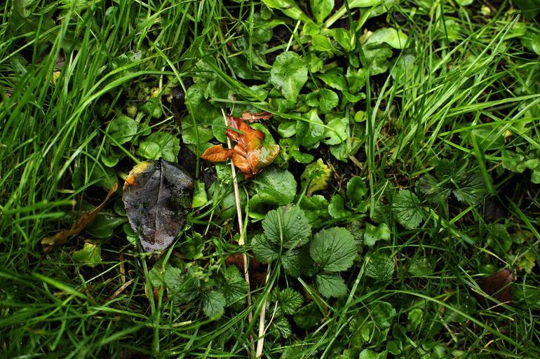 Keywords: autumn change the seasons change grass green dead leaves autumn leaf leaves