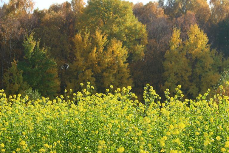 Keywords: autumn forest autumn leaves oilseed rape field of rapeseeds colorful color indian summer forest trees fall foliage golden autumn emerge fall leaves