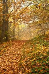 Keywords: autumn forest fall foliage colorful way path trail misty nature trees season outdoor yellow golden wood environment orange leaves scenery