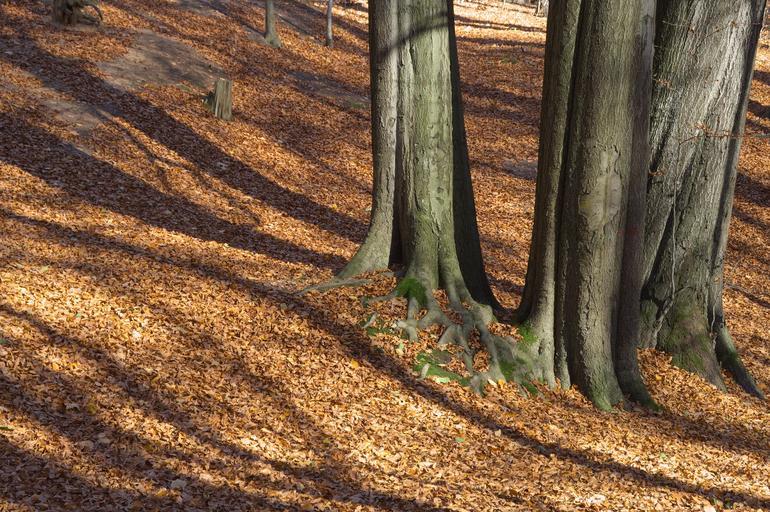 Keywords: autumn forest light shadow leaves tree trunks sunshine autumn forest
