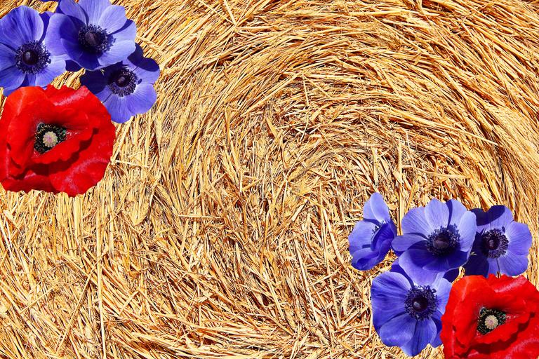 Keywords: autumn hay straw harvest field agriculture straw bales dried grass poppy