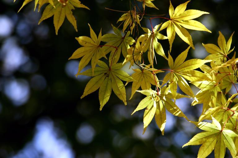 Keywords: autumn leaves autumn wood yellow maple leaf