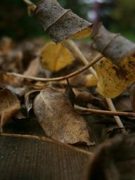 Keywords: autumn leaves fall foliage dry brown fall leaves fall color golden yellow emerge close