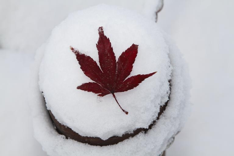 Keywords: autumn leaves snow winter