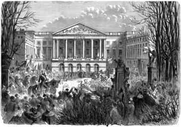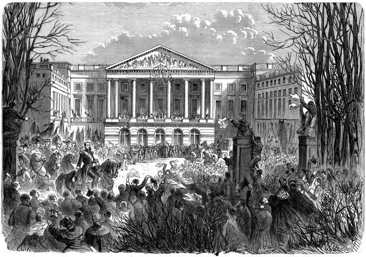 Keywords: Avènement de Léopold II devant le palais de la Nation.jpg Léopold II devant le Palais de la Nation le jour de son avènement Bruxelles le 17 décembre 1865 ” <font style font-family Georgia serif >Léopold est escorté à cheval par son état-major par son frère Philippe comte de Flandre et par l ™archiduc Joseph d ™Autriche frère de la Reine dans le cortège qui le mène du château de Laeken au Palais de la Nation Parlement à midi et demi Léopold arrive au Palais de la Nation où aura lieu la prestation du serment constitutionnel La garde civique et les troupes de la garnison sont sous les armes dans les rues par lesquelles le Roi est passé Le bataillon des chasseurs-éclaireurs la batterie d ™artillerie de la garde civique de Bruxelles les blessés et les décorés de septembre 1830 occupent l ™entrée du Palais de la Nation </font> 1865 Le Monde chrétien illustré France 1 p-page 289 draughtsman Creator Frédéric Lix engraver Creator Auguste Trichon other fields wood engraving Information field Size Size cm 17 24 bottom left LIX bottom right TRICHON Information field Original caption Léopold II se rendant au palais de la Nation Dodeeric other versions PD-old-auto-1923 1898 Leopold II of Belgium Historical images of the Palais de la Nation Brussels Royalty of Belgium House of Saxe-Coburg and Gotha Belgium Belgium in the 1860s 1865 in Belgium Frédéric Lix Auguste Trichon Wood engravings Engravings by Dodeeric |