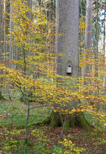 Keywords: aviary tree log nest autumn forest leaves sun back light nature autumn forest forest path mood golden autumn sunset leaves in the autumn fall color light golden coloring color away idyll evening sun
