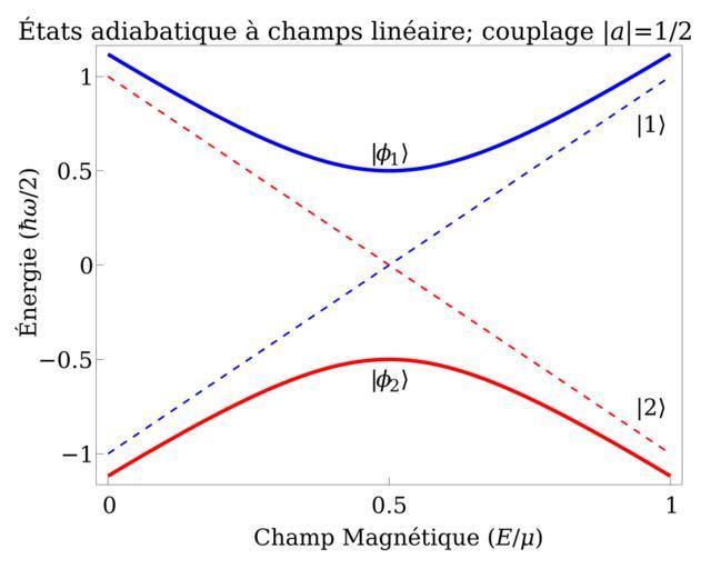 Keywords: Avoided crossing in linear field fr.svg en An avoided crossing of energy levels for a two-level coupled system in an external linear magnetic field fr Un croisement évité de niveaux d'énergie dans un système à deux niveaux soumis à un champ magnétique externe 2014-07-09 13 36 32 own SamuelRiv English original Svg version of File Avoided_crossing png by User DJIndica and its French version with the scale and title additionally labeled Originally intended for use in the articles w Adiabatic theorem and fr w Théorème_adiabatique Created in Mathematica 8 0 code with text reformatted using Inkscape 0 48 cc-zero Uploaded with UploadWizard Magnetic fields Quantum mechanics |