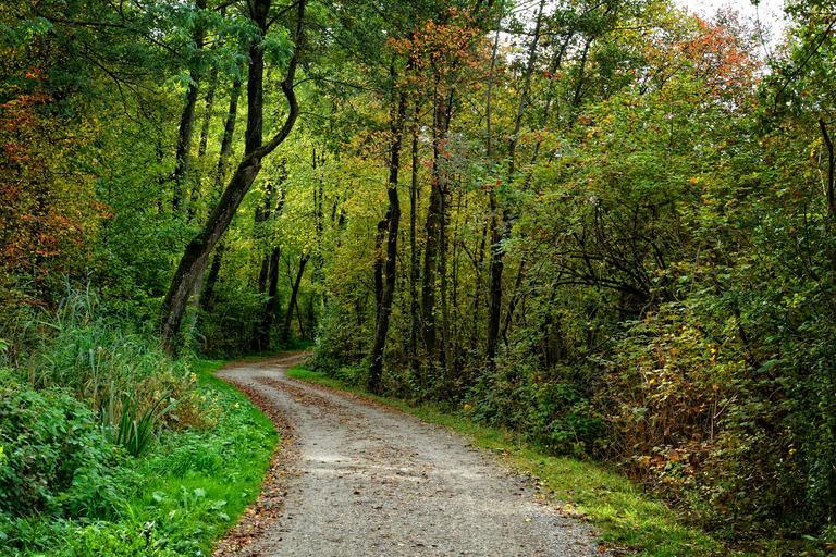 Keywords: away lane autumn forest path forest nature landscape way green trees hiking trail recovery holiday leisure relax landscape bavaria chiemgau