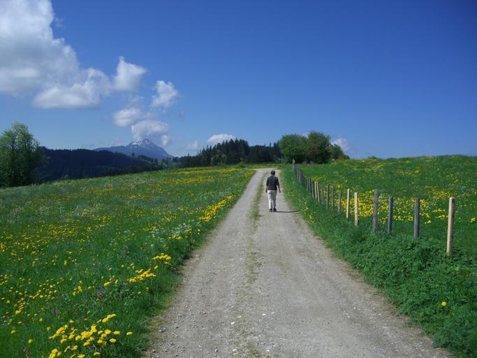 Keywords: away panorama trail hiking walk trail wanderer meadow sky blue clouds mountain greened allgäu frisch fromm cheerful free
