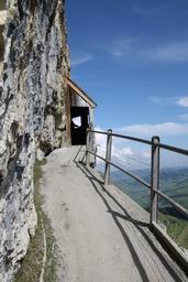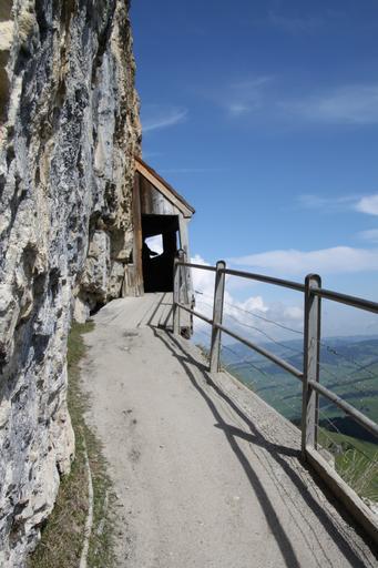 Keywords: away railing äscher cliff restaurant restaurant ebenalp appenzell switzerland mountains mountain hut romantic mountain station alpstein home nature exposed steep wall downhill