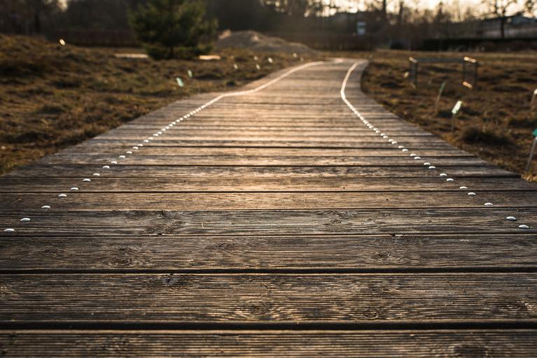 Keywords: away web path wooden track wood planks sunset abendstimmung atmospheric nature boards plank footbridge plank road wooden bridge planks wood dusk
